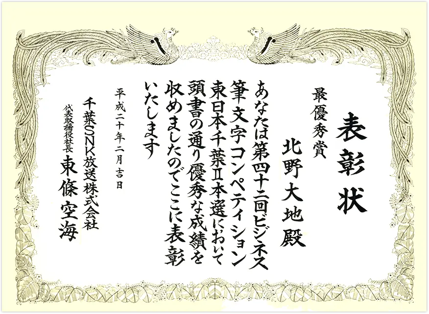 筆耕歴13年 / 賞状書士 2級